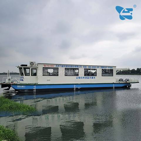 水域保潔供應(yīng)商:飛馳環(huán)保生產(chǎn)打撈船,割草船,浮萍收集船