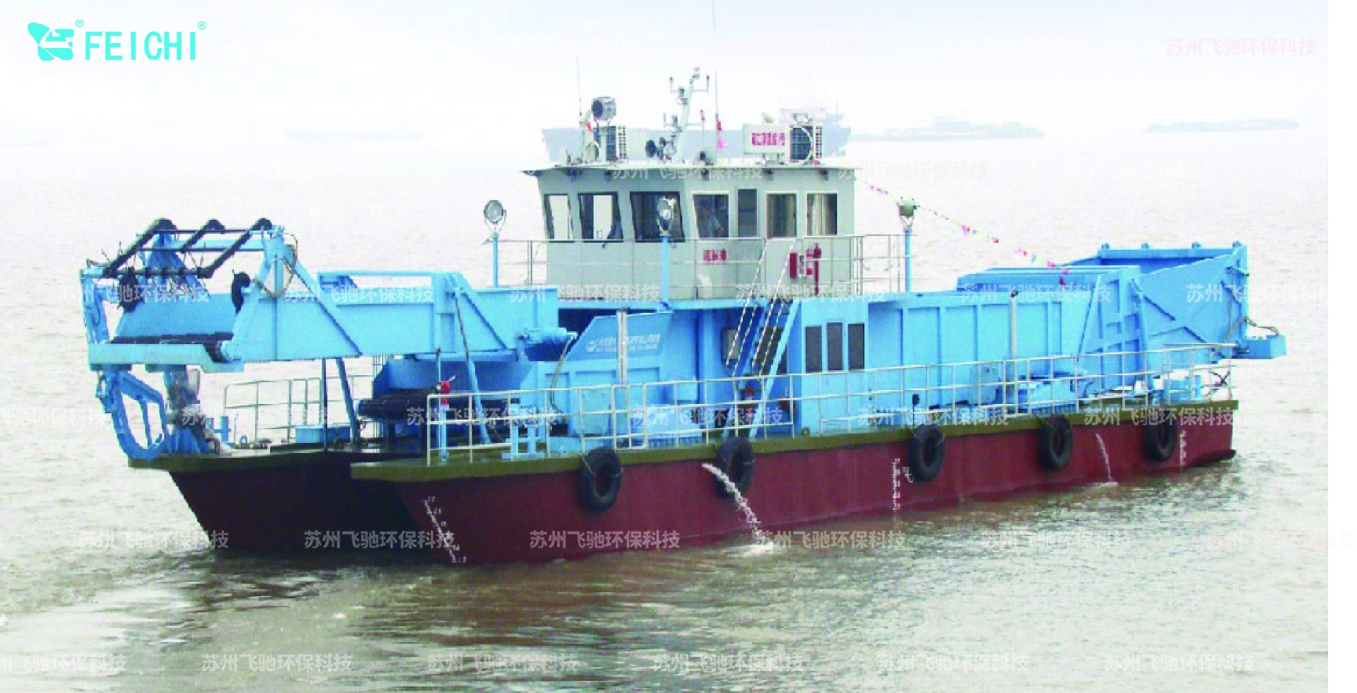 水域保潔供應(yīng)商:飛馳環(huán)保生產(chǎn)打撈船,割草船,浮萍收集船