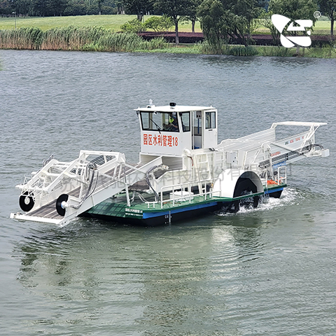水域保潔供應(yīng)商:飛馳環(huán)保生產(chǎn)打撈船,割草船,浮萍收集船