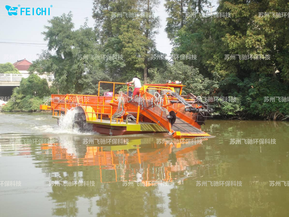 水域保潔供應(yīng)商:飛馳環(huán)保生產(chǎn)打撈船,割草船,浮萍收集船